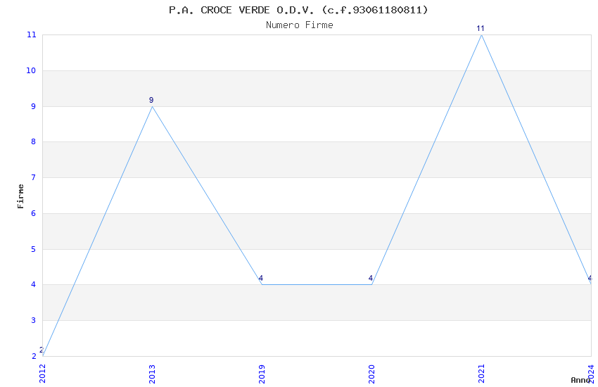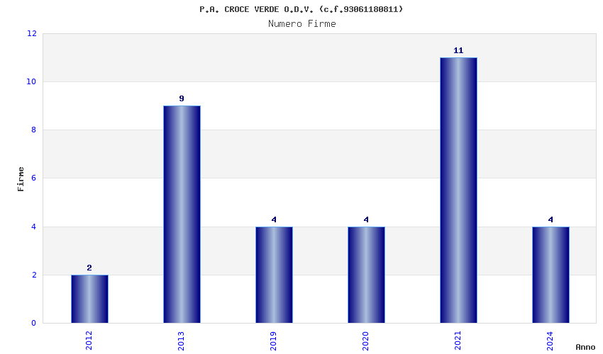 | Anno | Firme | Importi | Media | Naz. | Reg. | Prov. | Comu. |