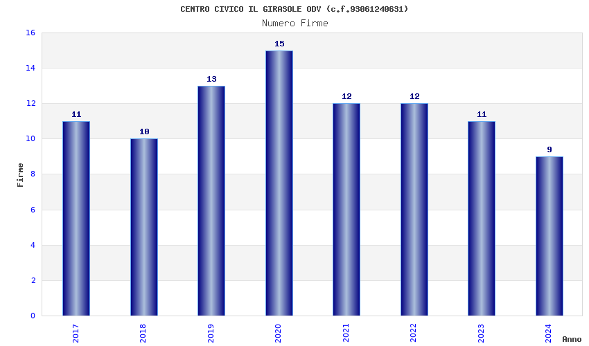 | Anno | Firme | Importi | Media | Naz. | Reg. | Prov. | Comu. |
