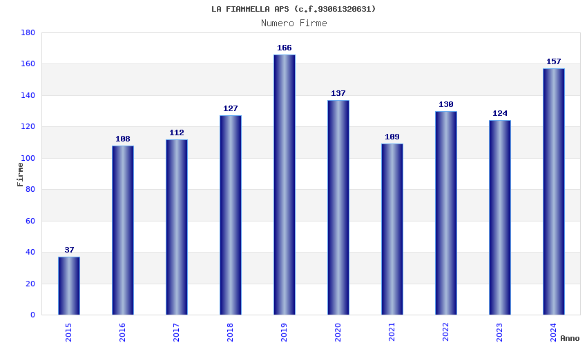 | Anno | Firme | Importi | Media | Naz. | Reg. | Prov. | Comu. |