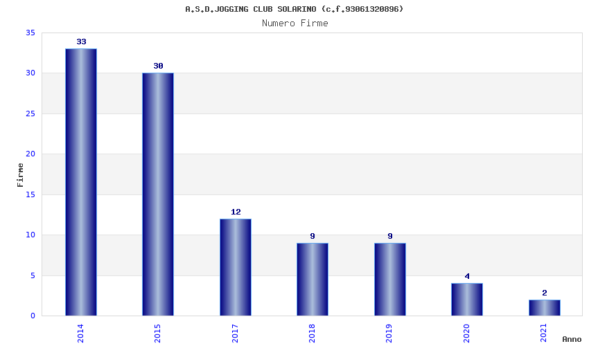 | Anno | Firme | Importi | Media | Naz. | Reg. | Prov. | Comu. |