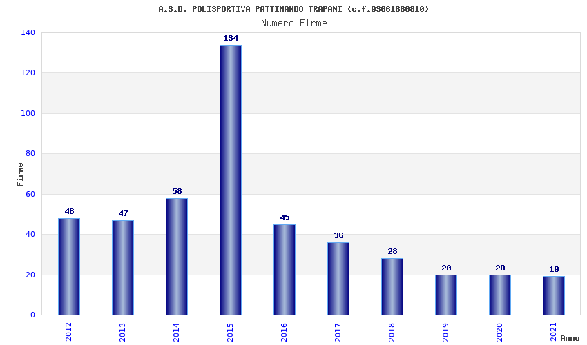 | Anno | Firme | Importi | Media | Naz. | Reg. | Prov. | Comu. |