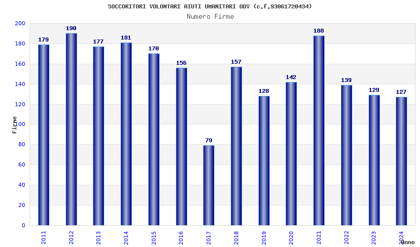 | Anno | Firme | Importi | Media | Naz. | Reg. | Prov. | Comu. |