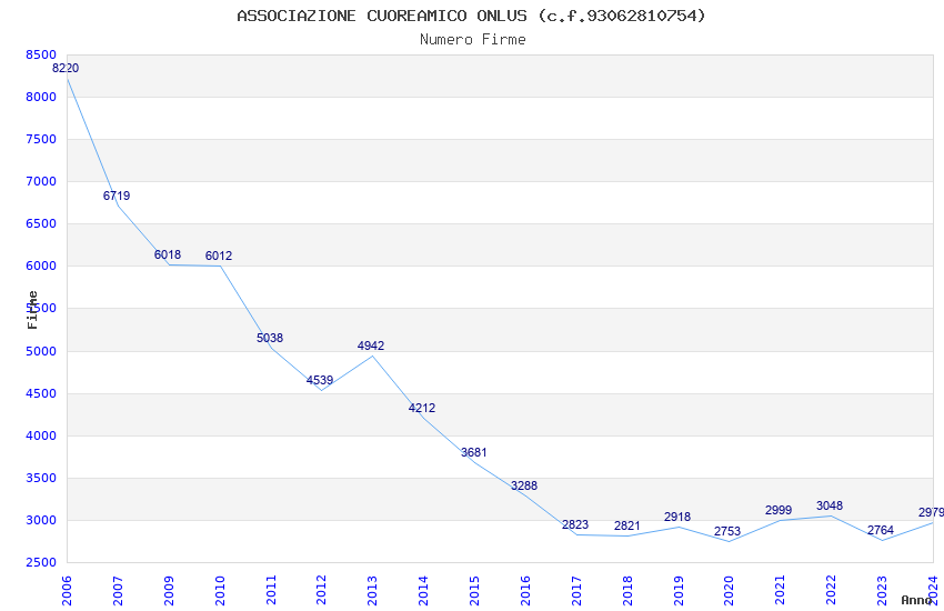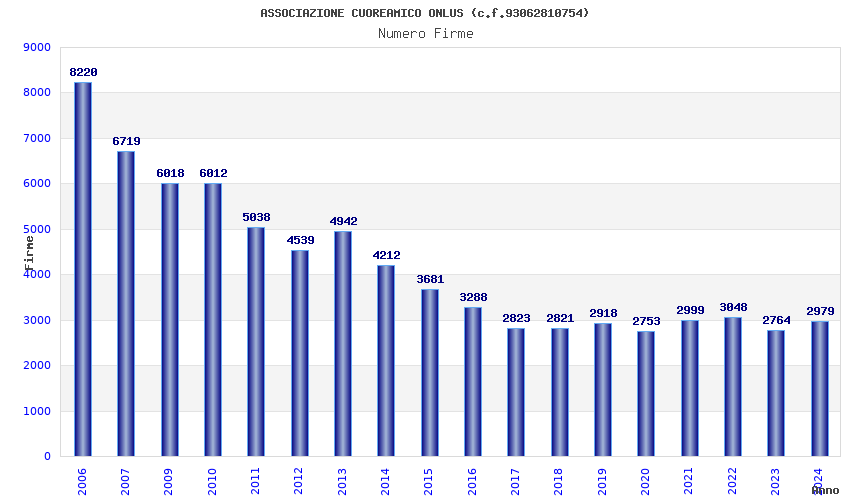 | Anno | Firme | Importi | Media | Naz. | Reg. | Prov. | Comu. |