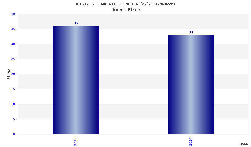 | Anno | Firme | Importi | Media | Naz. | Reg. | Prov. | Comu. |