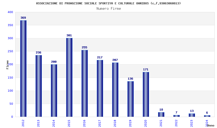 | Anno | Firme | Importi | Media | Naz. | Reg. | Prov. | Comu. |