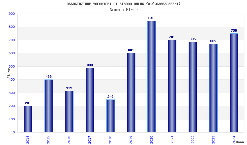 | Anno | Firme | Importi | Media | Naz. | Reg. | Prov. | Comu. |