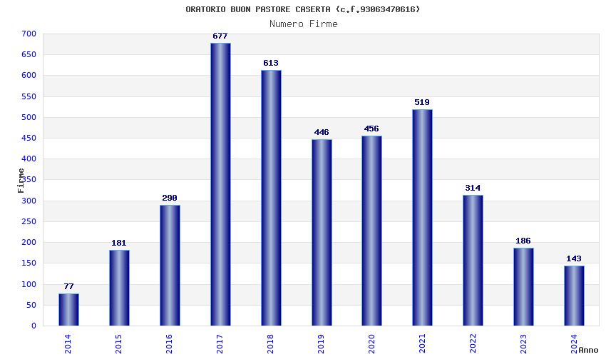 | Anno | Firme | Importi | Media | Naz. | Reg. | Prov. | Comu. |