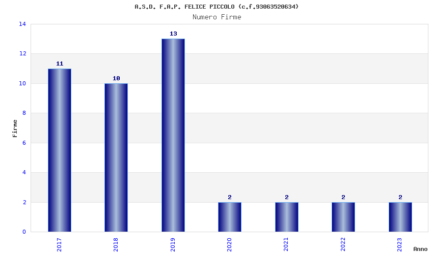 | Anno | Firme | Importi | Media | Naz. | Reg. | Prov. | Comu. |