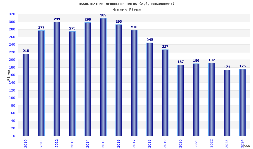 | Anno | Firme | Importi | Media | Naz. | Reg. | Prov. | Comu. |