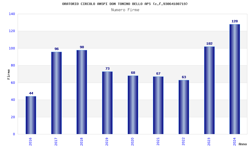 | Anno | Firme | Importi | Media | Naz. | Reg. | Prov. | Comu. |