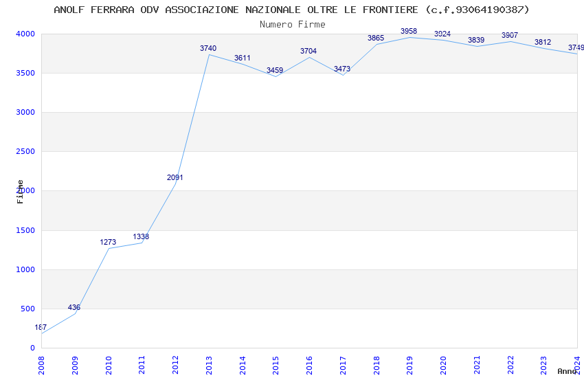 Anno Firme Importi Media Naz. Reg. Prov. Comu.