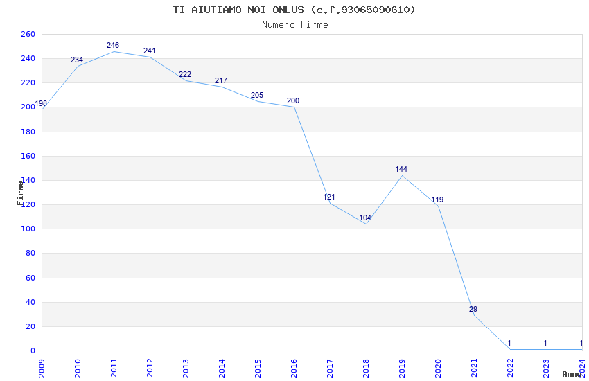 | 2021 | 29 | 2.812,64 | 96,99 | 18.558 | 1.141 | 142 | 2 |