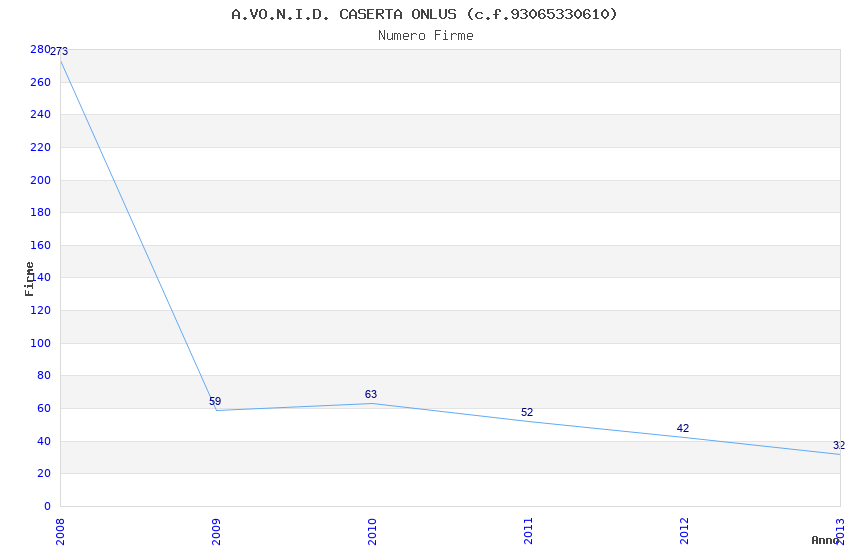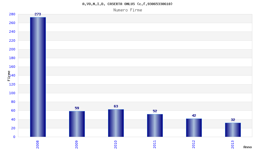 | Anno | Firme | Importi | Media | Naz. | Reg. | Prov. | Comu. |