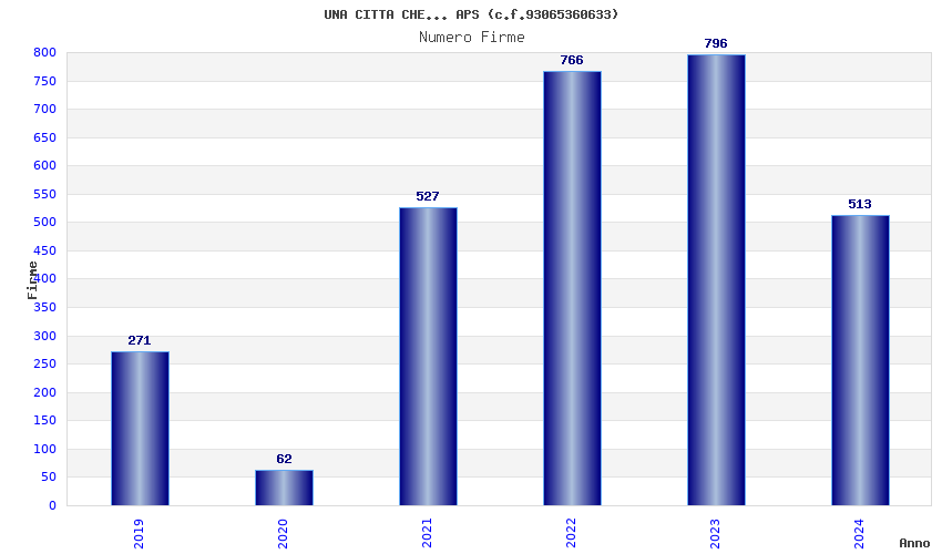 | Anno | Firme | Importi | Media | Naz. | Reg. | Prov. | Comu. |