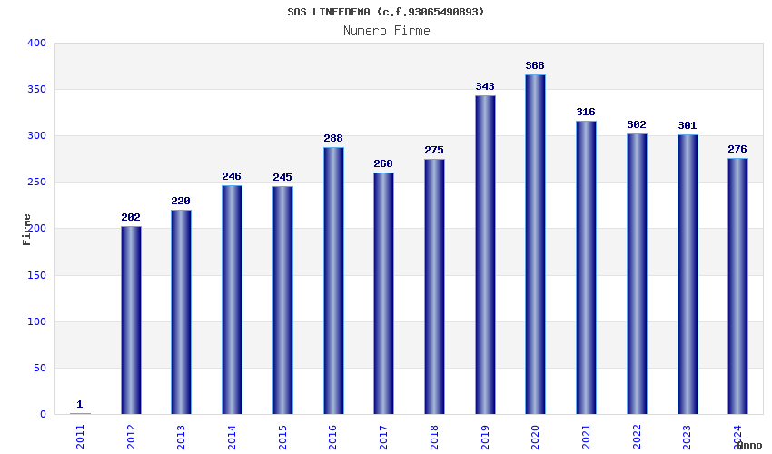 | Anno | Firme | Importi | Media | Naz. | Reg. | Prov. | Comu. |