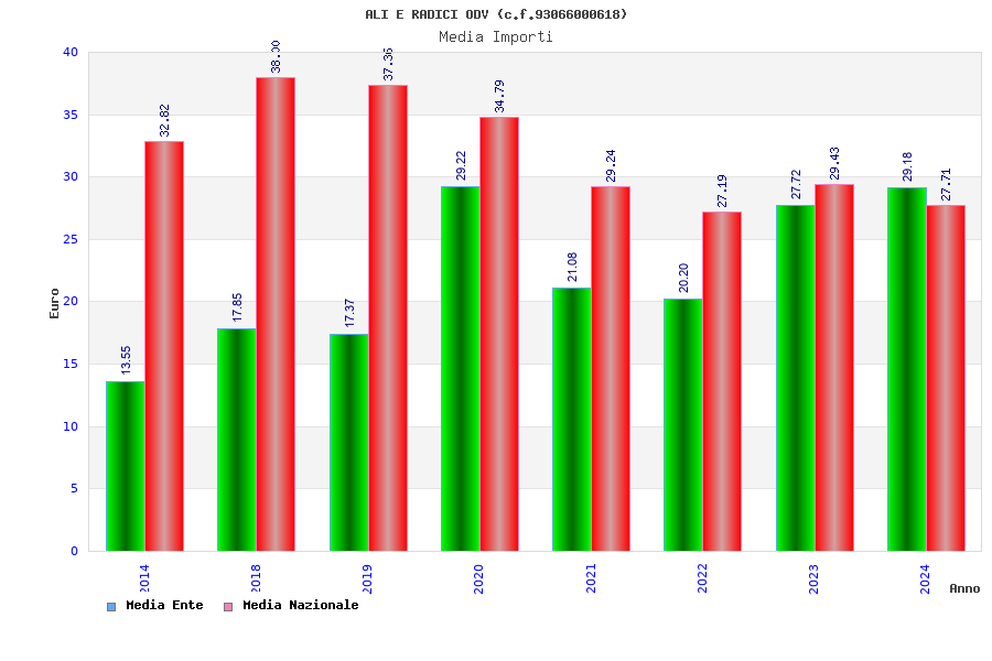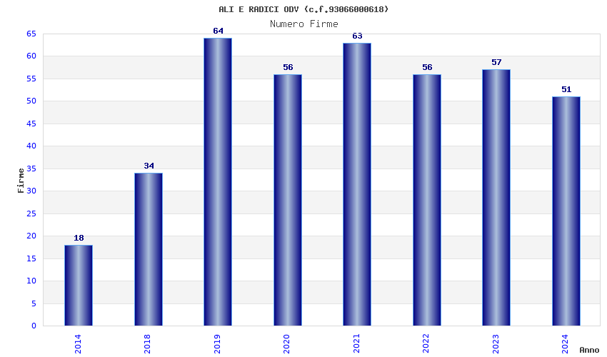| Anno | Firme | Importi | Media | Naz. | Reg. | Prov. | Comu. |
