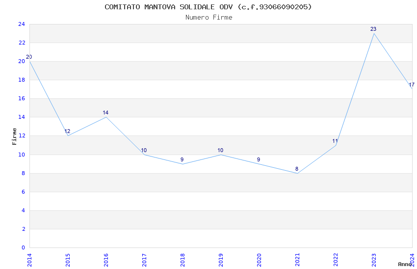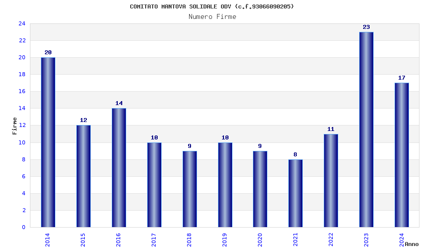 | Anno | Firme | Importi | Media | Naz. | Reg. | Prov. | Comu. |