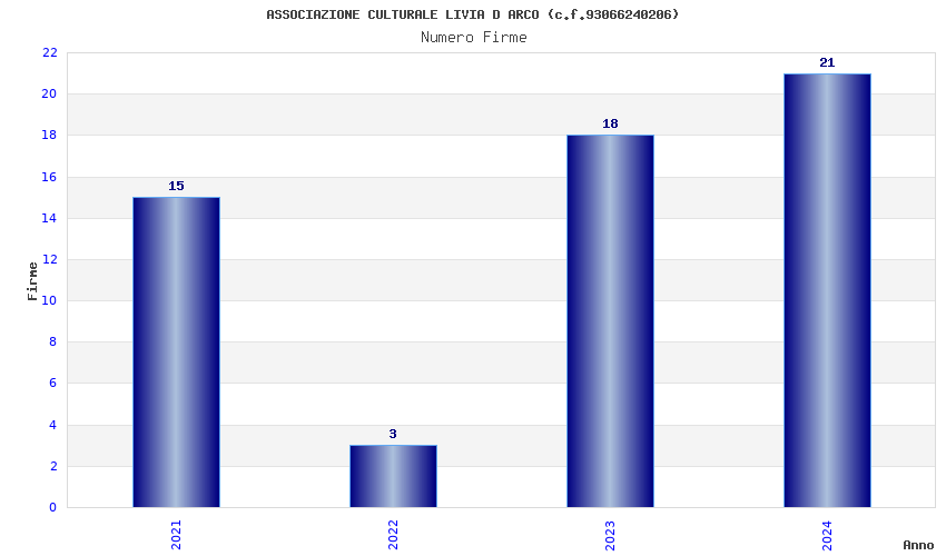 | Anno | Firme | Importi | Media | Naz. | Reg. | Prov. | Comu. |