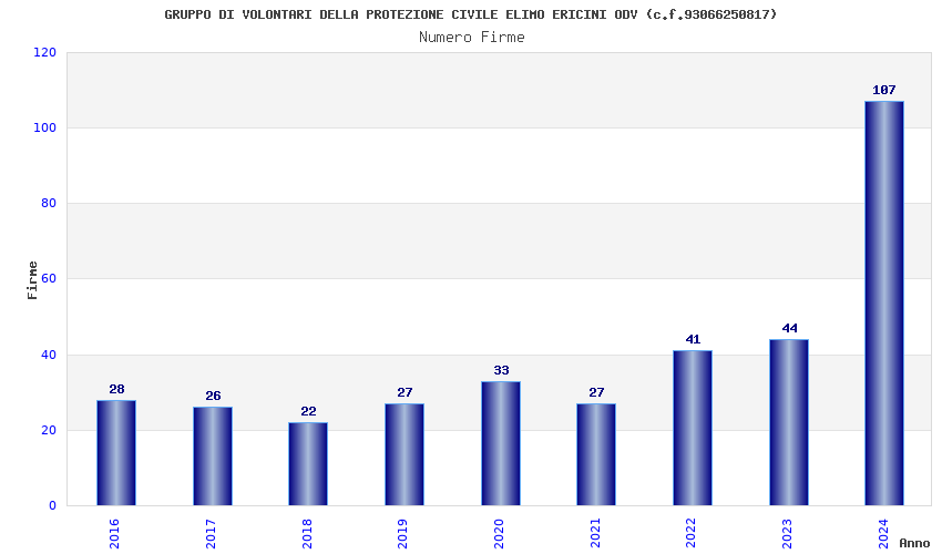 | Anno | Firme | Importi | Media | Naz. | Reg. | Prov. | Comu. |