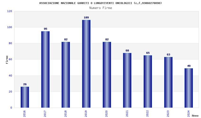 | Anno | Firme | Importi | Media | Naz. | Reg. | Prov. | Comu. |