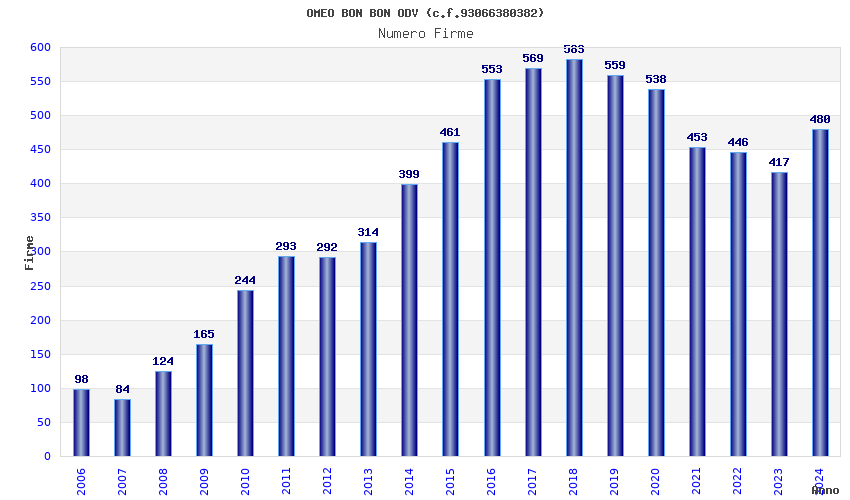 | Anno | Firme | Importi | Media | Naz. | Reg. | Prov. | Comu. |