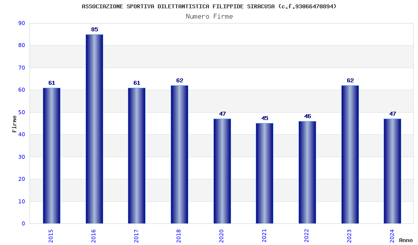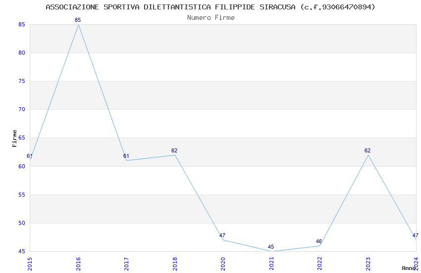 | 2016 | 85 | 3.490,36 | 41,06 | 15.191 | 908 | 67 | 32 |