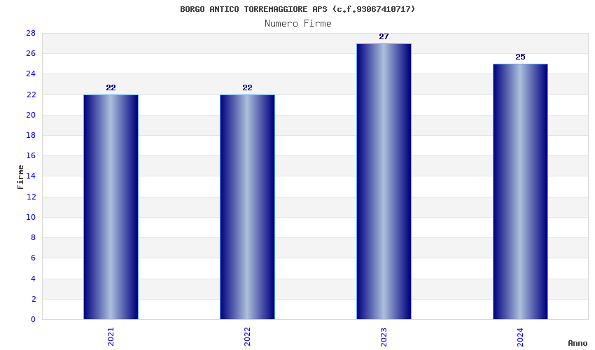 | Anno | Firme | Importi | Media | Naz. | Reg. | Prov. | Comu. |