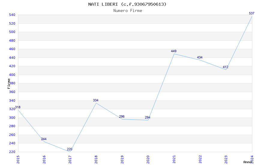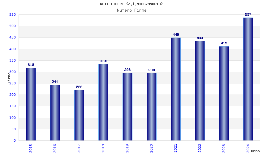 | Anno | Firme | Importi | Media | Naz. | Reg. | Prov. | Comu. |