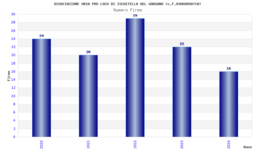 | Anno | Firme | Importi | Media | Naz. | Reg. | Prov. | Comu. |