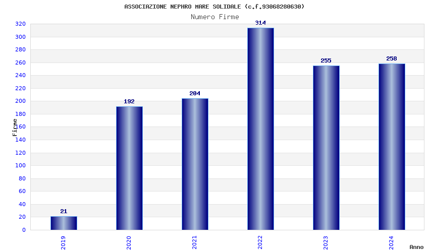 | Anno | Firme | Importi | Media | Naz. | Reg. | Prov. | Comu. |