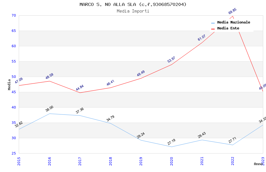 | Anno | Firme | Importi | Media | Naz. | Reg. | Prov. | Comu. |