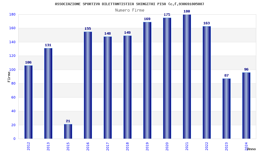 | 2021 | 180 | 5.351,46 | 29,73 | 10.206 | 653 | 88 | 2 |