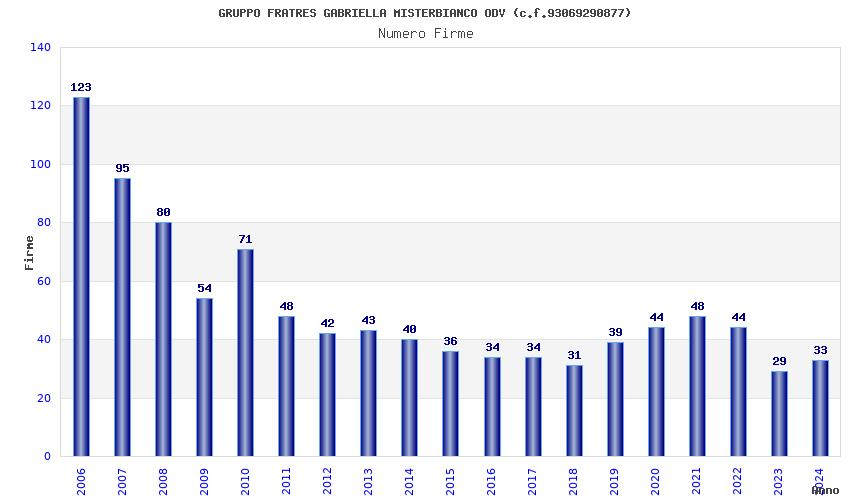| Anno | Firme | Importi | Media | Naz. | Reg. | Prov. | Comu. |