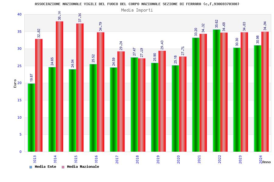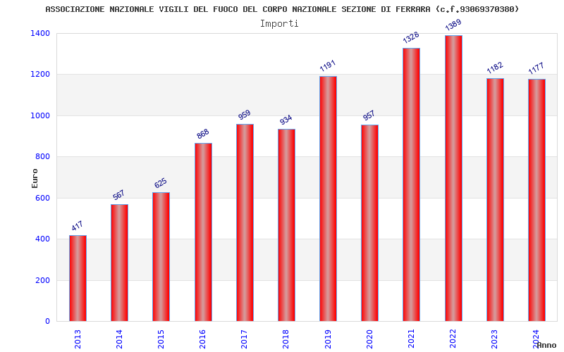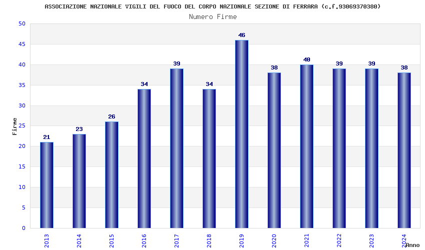 | Anno | Firme | Importi | Media | Naz. | Reg. | Prov. | Comu. |