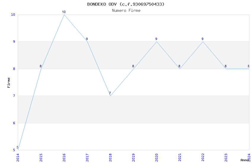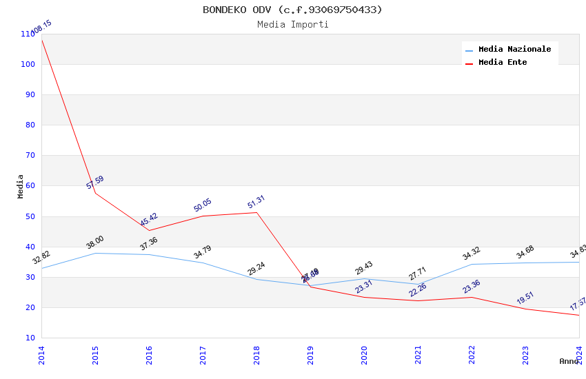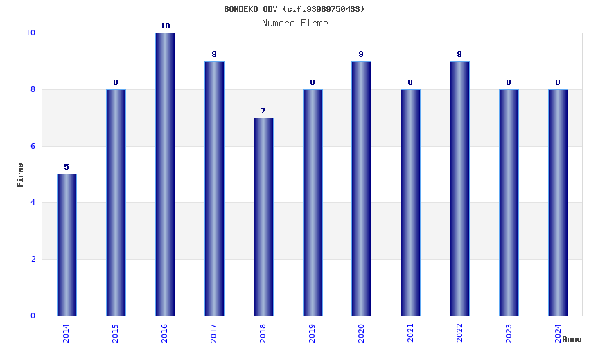 | Anno | Firme | Importi | Media | Naz. | Reg. | Prov. | Comu. |