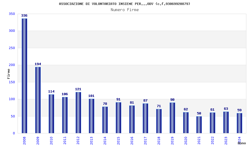| Anno | Firme | Importi | Media | Naz. | Reg. | Prov. | Comu. |
