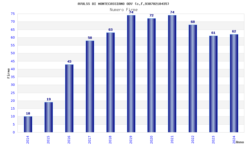 | 2019 | 74 | 1.525,60 | 20,62 | 28.510 | 716 | 125 | 3 |