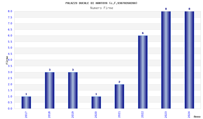 | Anno | Firme | Importi | Media | Naz. | Reg. | Prov. | Comu. |