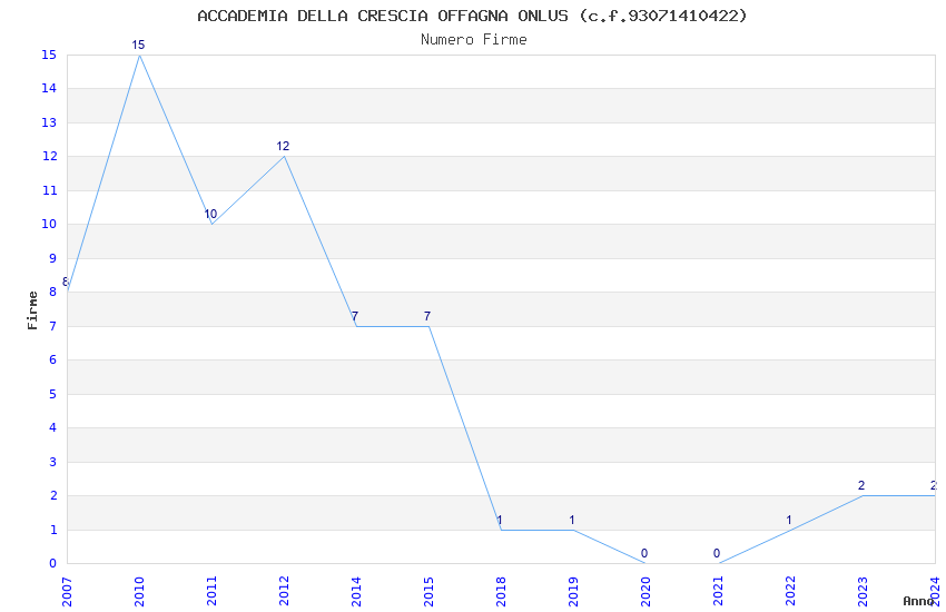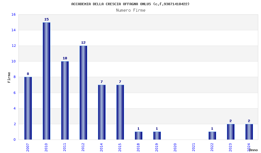 | Anno | Firme | Importi | Media | Naz. | Reg. | Prov. | Comu. |
