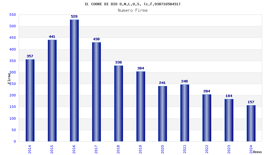 | Anno | Firme | Importi | Media | Naz. | Reg. | Prov. | Comu. |
