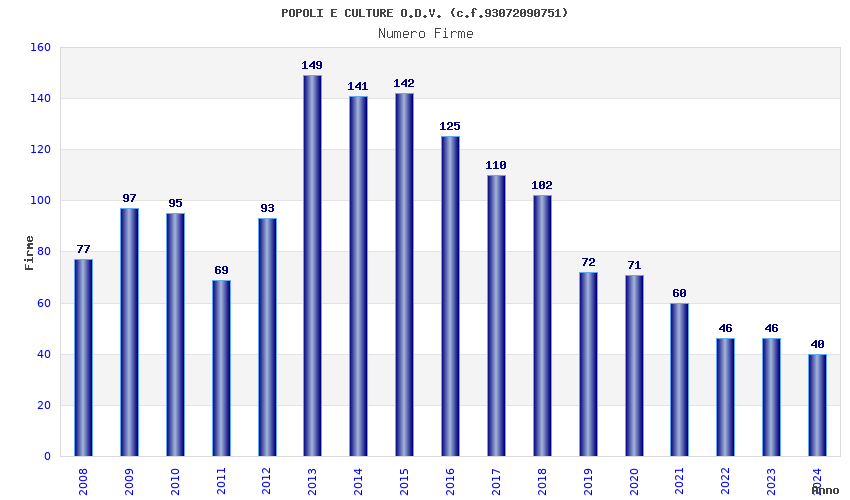 | Anno | Firme | Importi | Media | Naz. | Reg. | Prov. | Comu. |