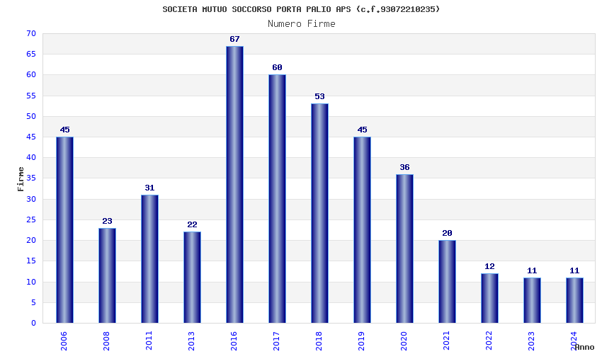 | Anno | Firme | Importi | Media | Naz. | Reg. | Prov. | Comu. |