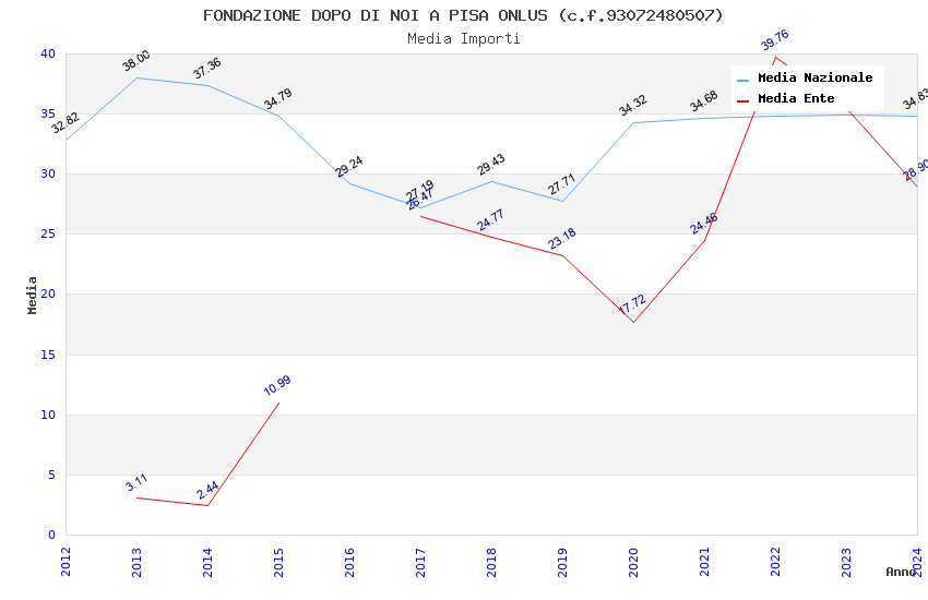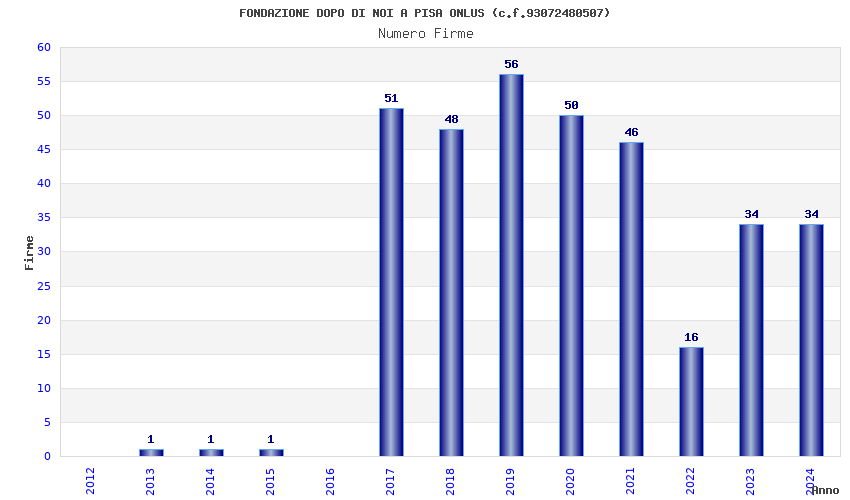 | Anno | Firme | Importi | Media | Naz. | Reg. | Prov. | Comu. |