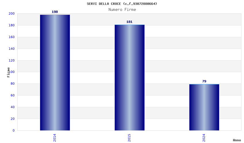| Anno | Firme | Importi | Media | Naz. | Reg. | Prov. | Comu. |