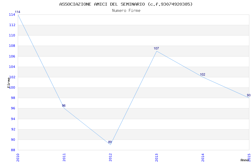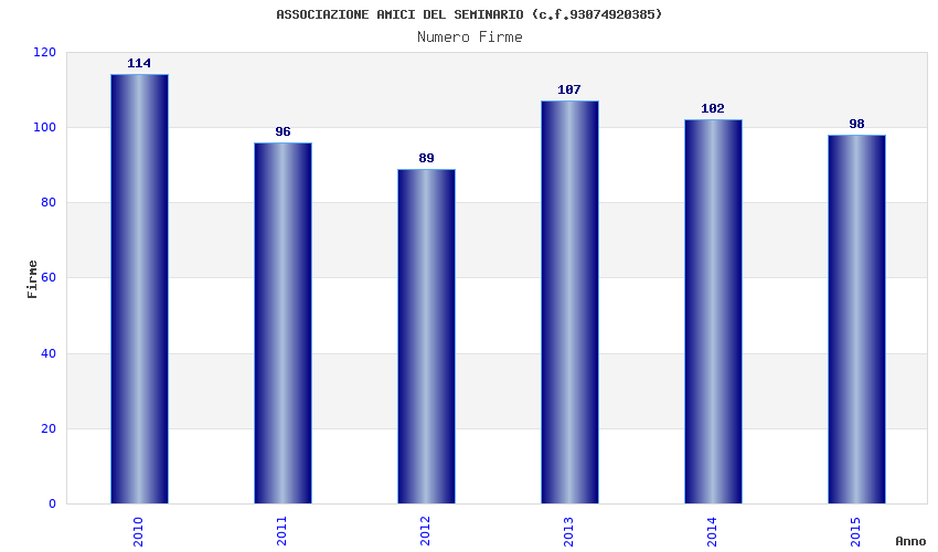 | Anno | Firme | Importi | Media | Naz. | Reg. | Prov. | Comu. |