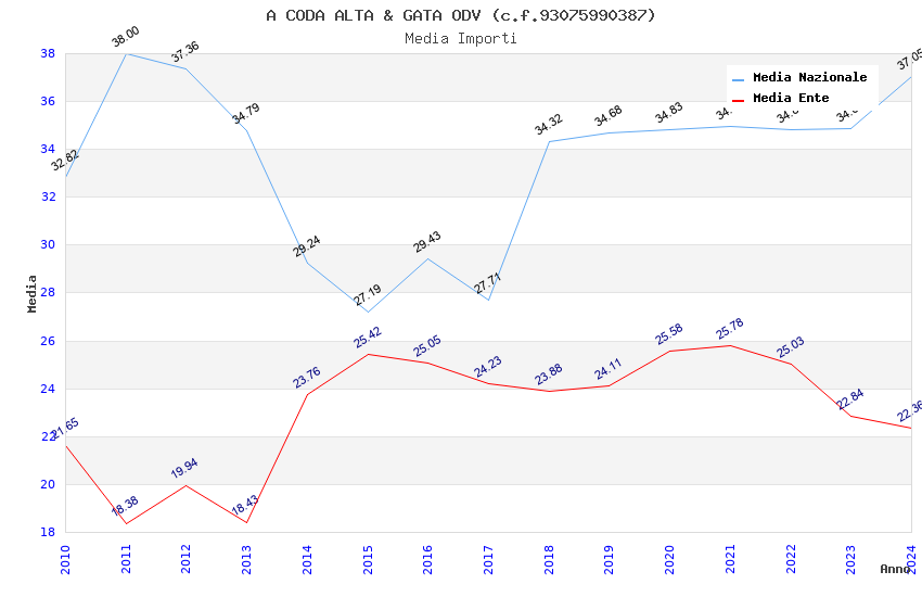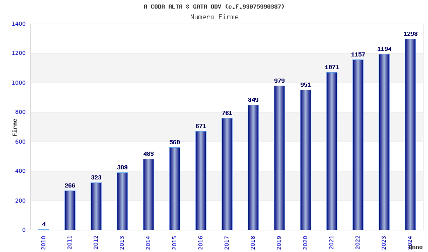 | Anno | Firme | Importi | Media | Naz. | Reg. | Prov. | Comu. |