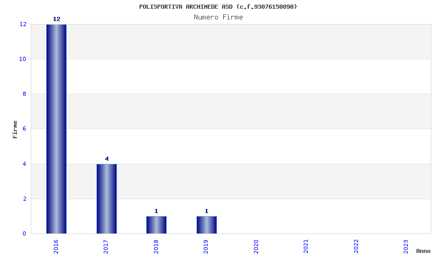 | Anno | Firme | Importi | Media | Naz. | Reg. | Prov. | Comu. |