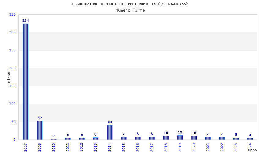 | Anno | Firme | Importi | Media | Naz. | Reg. | Prov. | Comu. |