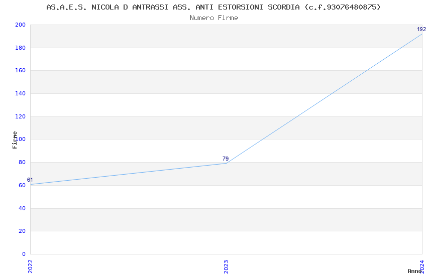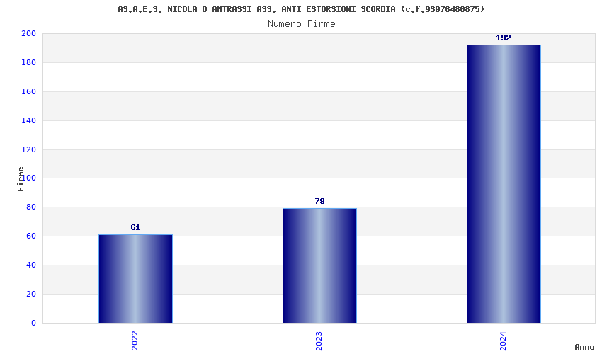 | Anno | Firme | Importi | Media | Naz. | Reg. | Prov. | Comu. |