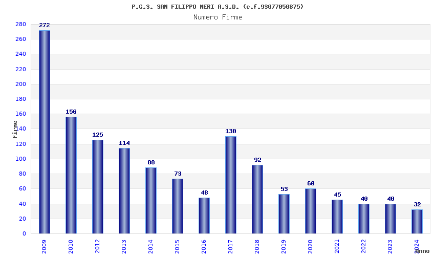 | Anno | Firme | Importi | Media | Naz. | Reg. | Prov. | Comu. |